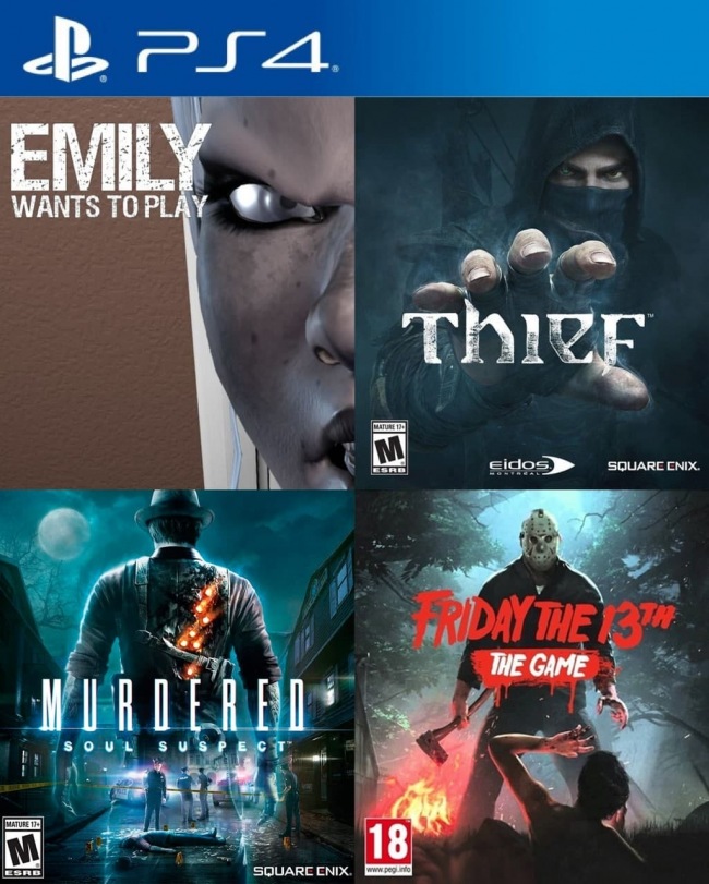 4 juegos en 1 Emily Wants To Play mas Thief mas Murdered Soul Suspect mas Friday the 13th The Game PS4
